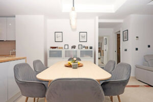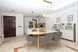 Este apartamento moderno en planta baja en La Mairena, Marbella, ofrece 2 dormitorios, 2 baños y 138 m² en una urbanización tranquila rodeada de naturaleza. El amplio salón con cocina de diseño e isla central se abre a una terraza acristalada, ideal como segundo salón o despacho. El jardín privado conecta con zonas comunes ajardinadas y disfruta de vistas al mar y a la montaña, con orientación sur-suroeste que garantiza sol todo el día.