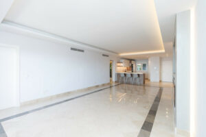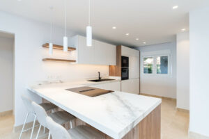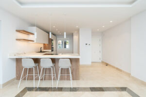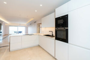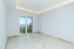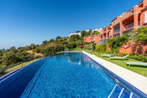 Apartamento en primera planta en La Mairena con vistas espectaculares al mar sobre pinos y alcornoques y con orientación sur. El apartamento ha sido completamente reformado con las mejores calidades incluidas ventanas, instalación eléctrica etc. Cocina moderna de concepto abierto con muebles de alta calidad. Baños en microcemento y suelo radiante. Aire acondicionado frío y calor y suelos de mármol. Dispone de dos dormitorios, dos cuartos de baño, uno de ellos en-suite, salón y comedor junto con cocina moderna y terraza cubierta y acristalada con cortinas de cristal. Tiene además una chimenea eléctrica de última generación. Plaza de parking dentro del conjunto. Urbanización espectacular integrada en la naturaleza con grandes zonas verdes y con piscina infinita.