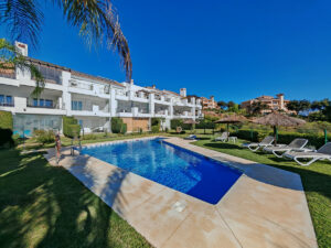 Apartamento en venta en La Mairena, Marbella con 2 dormitorios, 2 baños, 1 baño en suite y con orientación sur, con piscina comunitaria, garaje privado (1 plazas) y jardín comunitario. Respecto a las dimensiones, la propiedad presenta 93,75 m² construidos y 29,65 m² de terraza. Tiene las siguientes características próxima a la montaña, aire acondicionado, completamente amueblado, cocina totalmente equipada, trastero, gimnasio, entrada de seguridad, cristal doble, videoportero, terraza privada, depósito de agua, vistas al mar, vistas al campo, vistas a la montaña, vistas al golf, internet – wi-fi, terraza cubierta, armarios empotrados, comunidad cerrada, ascensor, vistas al jardín, vistas panorámicas, terraza descubierta, balcón, balneario – spa, accesible para movilidad reducida y excelente estado.