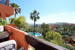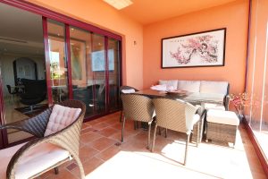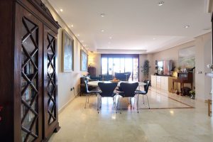 Esta propiedad se encuentra en la mejor ubicación del complejo, disfrutando de vistas espectaculares y mucha luz natural, características que la distinguen de las propiedades en otros bloques. Este apartamento de dos dormitorios y dos baños, más amplio que el promedio, ha sido reformado con una cocina moderna y una cortina de cristal que permite cerrar la terraza cubierta. El apartamento incluye plaza de aparcamiento subterráneo y trastero.