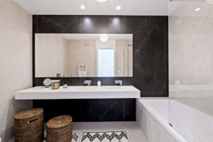 La vivienda cuenta con suelo radiante y aire acondicionado, ambos con control individual. Los baños son funcionales y están bien acabados, con mampara en el baño principal y espacio de almacenaje bajo los lavabos. La plaza de garaje subterránea está preinstalada para la carga de vehículo eléctrico.