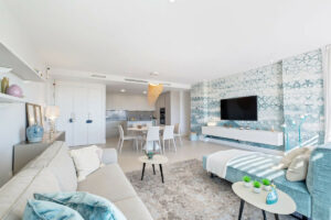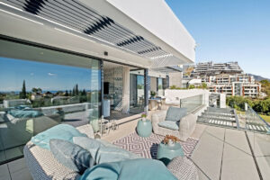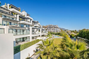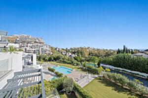 Este elegante apartamento de dos dormitorios y dos baños se encuentra en la prestigiosa urbanización Aqualina, en pleno corazón del Golf Valley de Marbella. La vivienda dispone de 112 m² de superficie interior y una amplia terraza privada de 43 m² con vistas abiertas al mar, ideal tanto para vivir todo el año como para disfrutar de vacaciones.