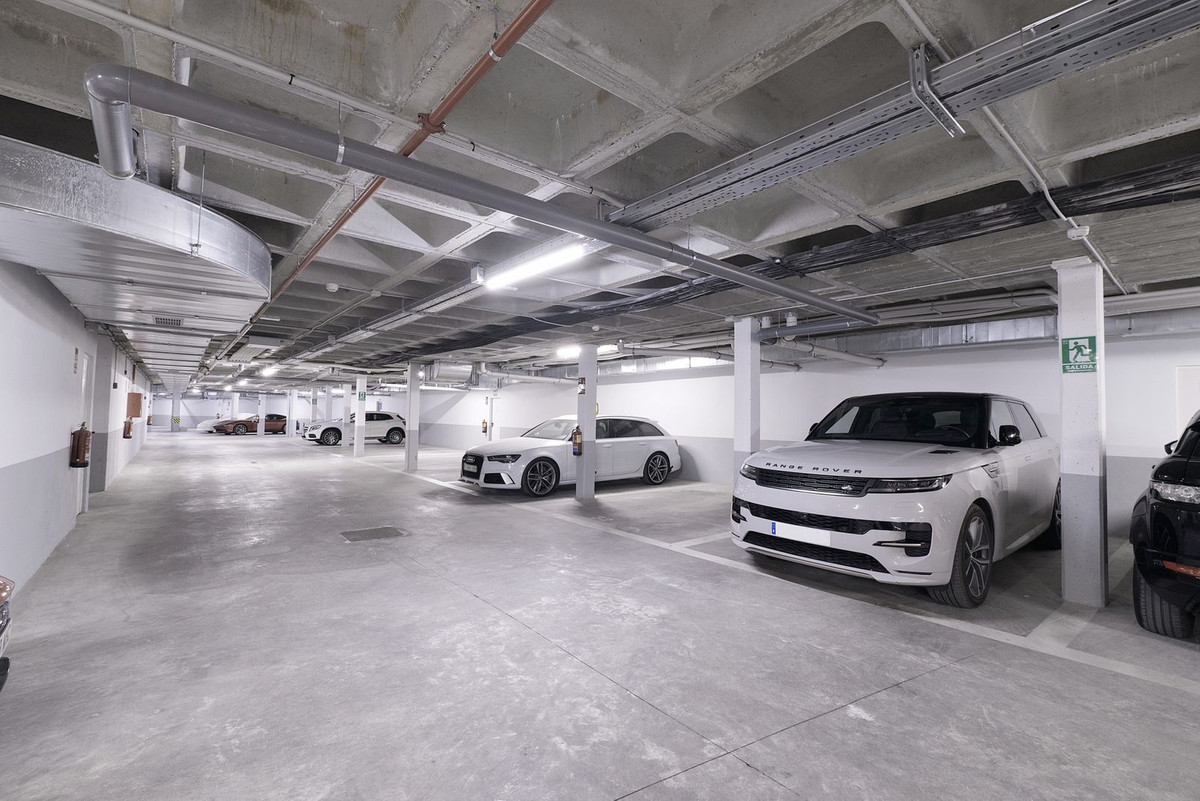 La vivienda cuenta con suelo radiante y aire acondicionado, ambos con control individual. Los baños son funcionales y están bien acabados, con mampara en el baño principal y espacio de almacenaje bajo los lavabos. La plaza de garaje subterránea está preinstalada para la carga de vehículo eléctrico.