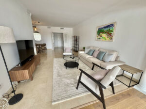 Amplio y luminoso apartamento de. 2 dormitorios en la codiciada urbanización de Balcones de La Quinta, en el corazón de Nueva Andalucía. Aunque el apartamento está en perfecto estado y listo para vivir, representa una buena oportunidad para alguien que quiera reformarlo, ya que es fácil añadirle un tercer dormitorio en suite y abrirle la gran terraza que tiene. La comunidad es privada y ofrece preciosos jardines, 2 grandes piscinas y parking cubierto.