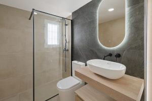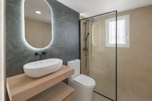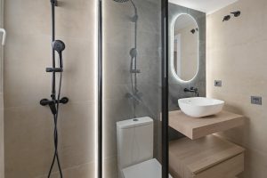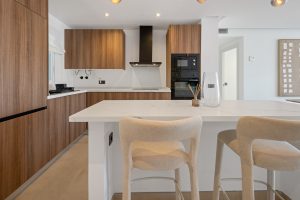 Situado en la planta intermedia, el apartamento consta de dos dormitorios de generosas dimensiones y dos baños elegantes. Desde esta posición elevada, los residentes pueden disfrutar de amplias vistas al Mar Mediterráneo, a los campos de golf cercanos y a las montañas, creando una sensación de espacio, luz y tranquilidad.