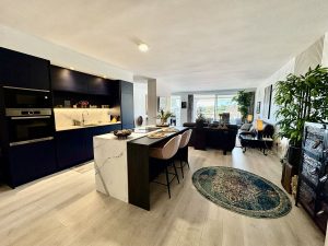 Moderno y amplio apartamento en venta en la codiciada urbanización de Balcones de la Quinta en Nueva Andalucía. La propiedad está completamente renovada siendo muy cómoda tal y como está pero se le podría añadir un tercer dormitorio y baño fácilmente por su amplitud. La comunidad es privada y cerrada y ofrece 2 grandes piscinas, jardines paisajísticos con vistas al Campo de Golf de la Quinta y parking cubierto debajo de la vivienda.