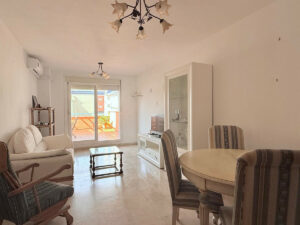 El alojamiento incluye dos dormitorios dobles con armarios empotrados, un moderno baño con ducha y la propiedad se caracteriza por su luminosidad y amplitud. El aire acondicionado recientemente instalado en el salón garantiza comodidad en cualquier época del año.