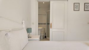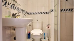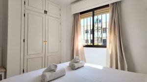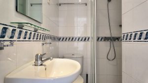 El apartamento cuenta con dos dormitorios de buen tamaño con armarios empotrados, lo que garantiza un amplio espacio de almacenamiento. Además, dispone de dos baños, facilitando la rutina diaria. Construido en 1985 y bien mantenido, la vivienda ofrece comodidades modernas como aire acondicionado y calefacción mediante bomba de calor, asegurando confort durante todo el año.