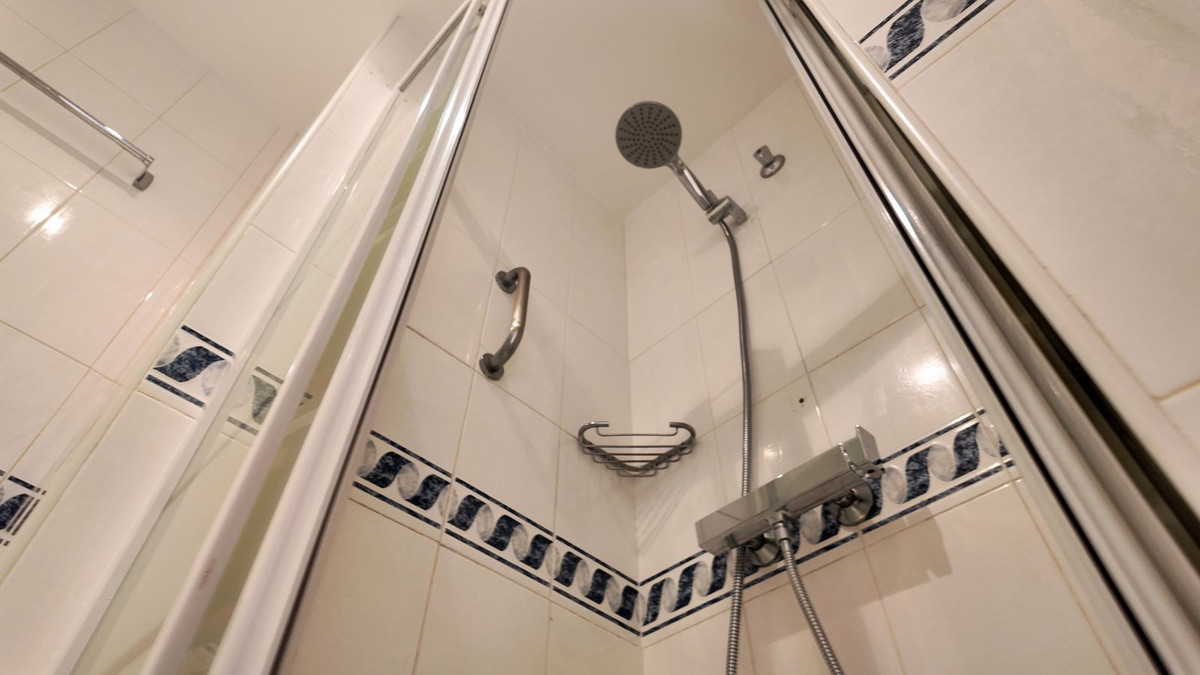 El apartamento cuenta con dos dormitorios de buen tamaño con armarios empotrados, lo que garantiza un amplio espacio de almacenamiento. Además, dispone de dos baños, facilitando la rutina diaria. Construido en 1985 y bien mantenido, la vivienda ofrece comodidades modernas como aire acondicionado y calefacción mediante bomba de calor, asegurando confort durante todo el año.