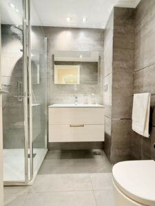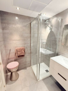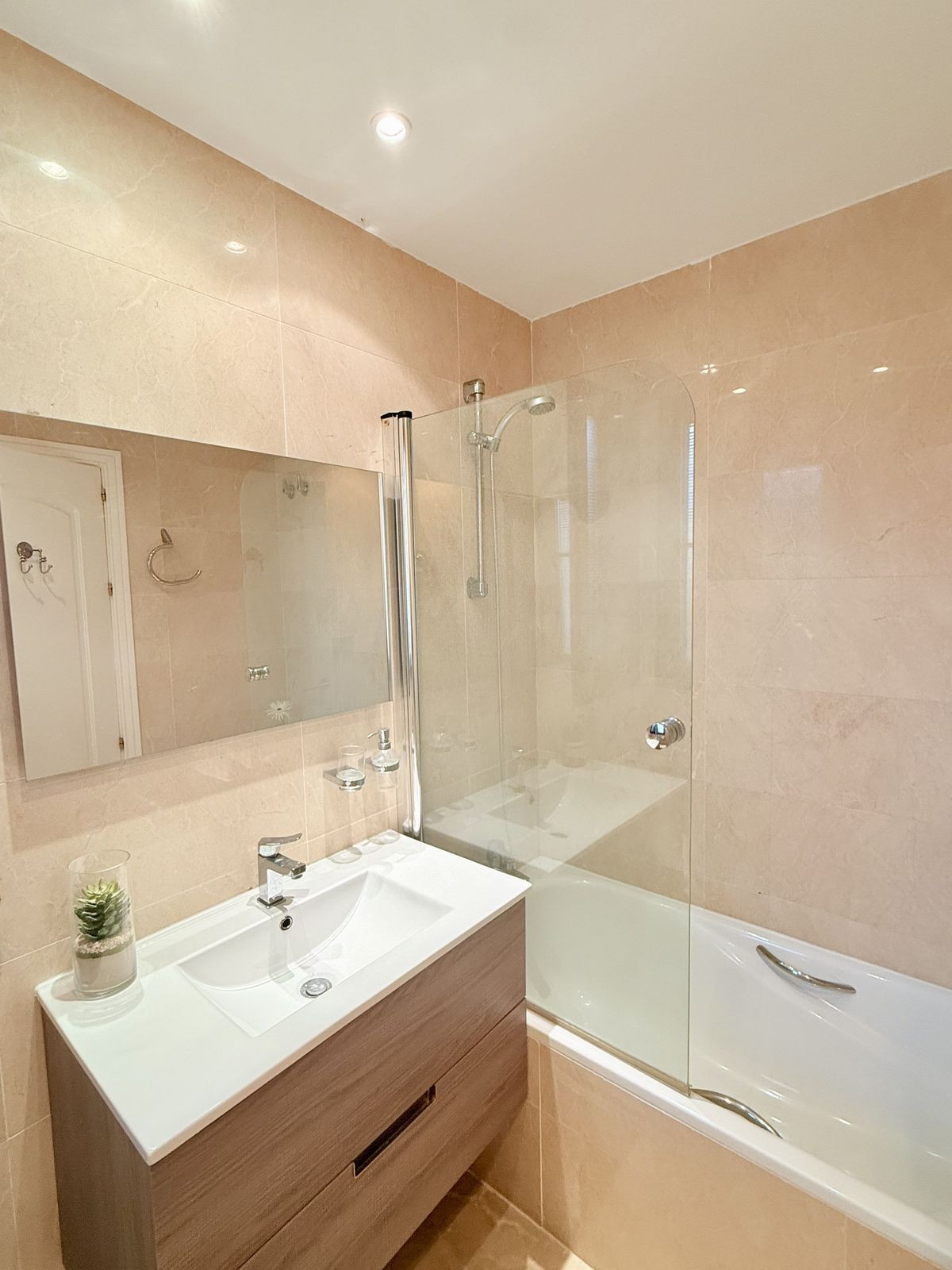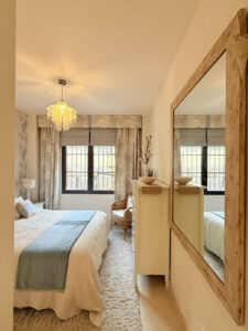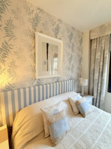 La propiedad incluye dos espaciosas habitaciones dobles. La suite principal cuenta con baño privado con bañera y acceso directo al jardín, mientras que un segundo baño completo da servicio a la habitación adicional y a los invitados. Amplios armarios empotrados en toda la propiedad garantizan un excelente espacio de almacenamiento.