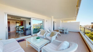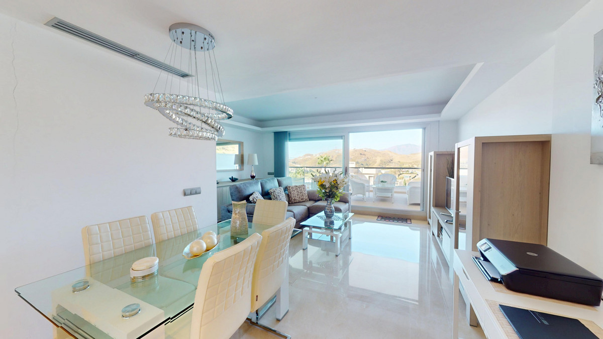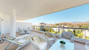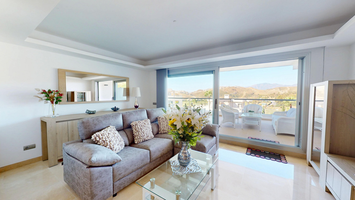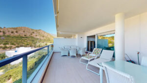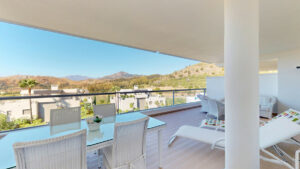 Destaca por su orientación oeste, que garantiza sol por la tarde y vistas abiertas hacia la montaña y vistas parciales al campo de golf, creando un entorno tranquilo y agradable.