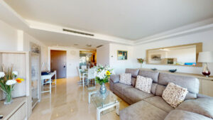Se vende elegante apartamento de 2 dormitorios y 2 baños (uno de ellos en suite), situado en una planta baja elevada dentro de un complejo residencial cerrado con piscina y jardines comunitarios, en la prestigiosa zona de Los Arqueros, Benahavís.