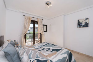 El dormitorio principal incluye armarios empotrados, baño en suite y acceso directo a la terraza. El segundo dormitorio y el baño de invitados ofrecen gran comodidad para familiares o visitas.