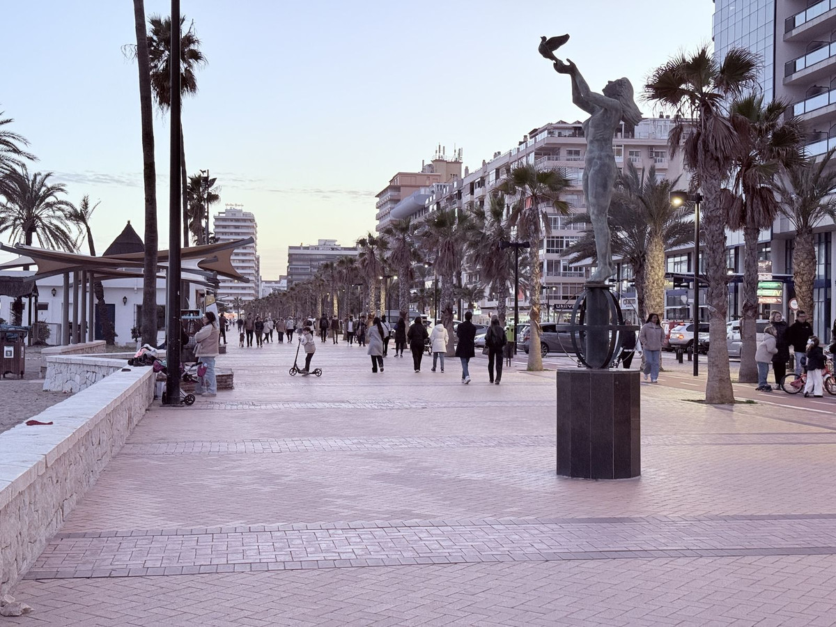 Se vende apartamento en primera planta (no es bajo) con 2 dormitorios y 2 baños, situado en segunda línea de playa en Fuengirola, zona Los Boliches.