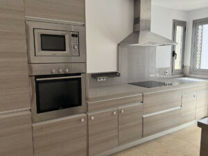 La cocina está diseñada para satisfacer todas tus necesidades culinarias y se integra perfectamente con el amplio salón-comedor, creando un espacio ideal para disfrutar de momentos inolvidables. Desde aquí, accede a una amplia terraza donde podrás relajarte y contemplar las vistas que te ofrece este maravilloso entorno. Además, el apartamento incluye una plaza de garaje doble y un trastero, brindando comodidad y funcionalidad.