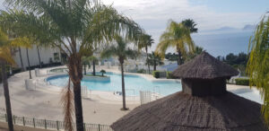 Bonitas y extensas zonas comunes con preciosas vistas al mar, estrecho de Gibraltar y divisándose incluso los montes Africanos! Conjunto Residencial muy tranquilo, rodeado de montañas. A 5 min en coche de la playa. Buenas comunicaciones.