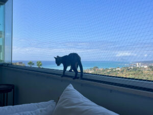 La terraza, ligeramente elevada para conservar las vistas incluso estando sentado, ofrece un panorama impresionante del Mediterráneo, el Peñón de Gibraltar y la costa marroquí, manteniendo a la vez la intimidad visual gracias a un discreto murete.