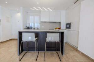 La moderna cocina está totalmente equipada y ambos dormitorios son amplios; el principal cuenta con baño en suite y acceso directo a una terraza privada.