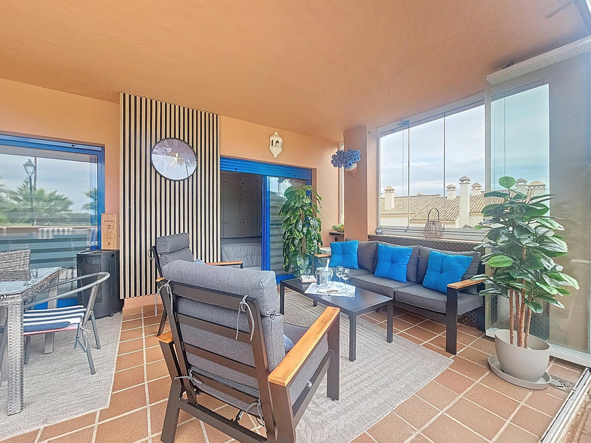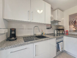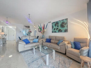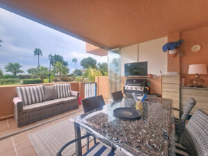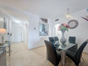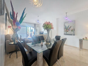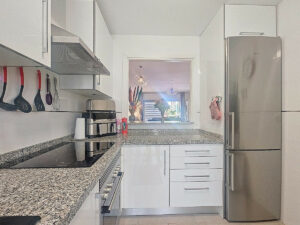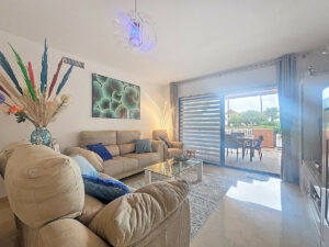 El apartamento cuenta con dos dormitorios cómodos y dos baños decorados con buen gusto. La zona de estar, amplia y acogedora, se abre a una gran terraza privada, perfecta para disfrutar del clima suave de la Costa del Sol, compartir comidas al aire libre o relajarse en un entorno tranquilo.
