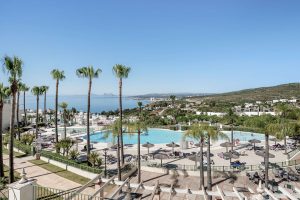 Los huéspedes disfrutan de varias piscinas, instalaciones deportivas, zona de juegos infantiles, restaurantes y un mini-mercado en el propio complejo – todo lo necesario para unas vacaciones completas.