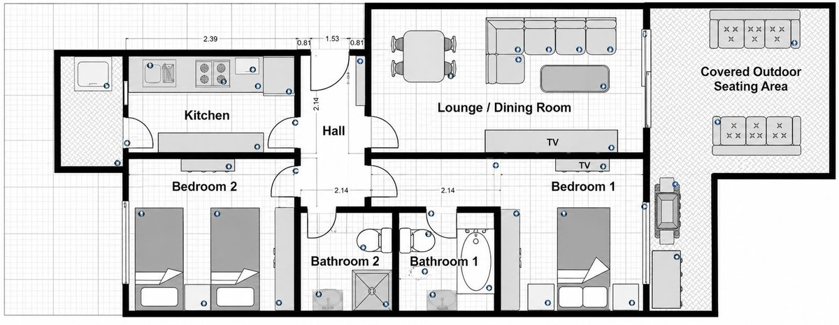 El segundo baño ha sido reformado e incluye una ducha a ras de suelo, que también funciona como aseo de invitados. Además, el sistema de aire acondicionado central se actualizó hace aproximadamente un año.