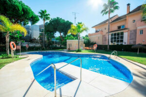 En la urbanización se puede encontrar una piscina comunitaria con un jardín muy grande. Esta muy bien cuidado y mantenido.