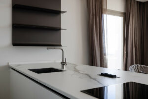 El apartamento cuenta con una cocina totalmente equipada y aire acondicionado para garantizar el máximo confort. Además, se incluyen características de lujo como una sauna, gimnasio, piscina cubierta y climatizada, y sistema de domótica.