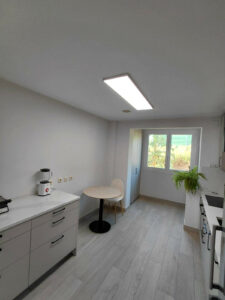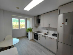 Cocina renovada, completamente equipada con electrodomésticos de alta calidad: frigorífico, horno, placa vitrocerámica, lavavajillas y lavadora.