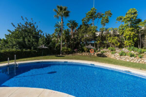 La vivienda se encuentra en la exclusiva urbanización Camino del Pinar, que dispone de dos piscinas ajardinadas ideales para disfrutar del clima marbellí.