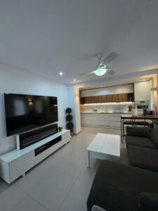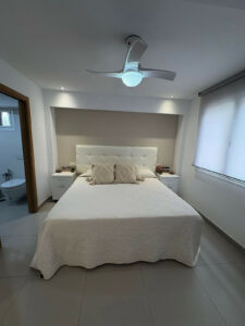 Distribución Amplia y Adaptada: Dos dormitorios generosos en suite con armarios empotrados, dos baños modernos y aire acondicionado completo para confort todo el año.