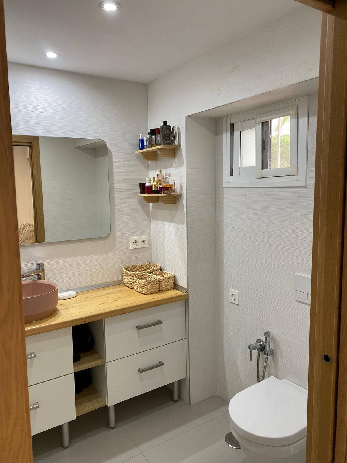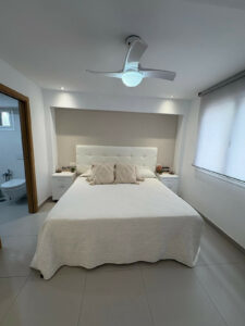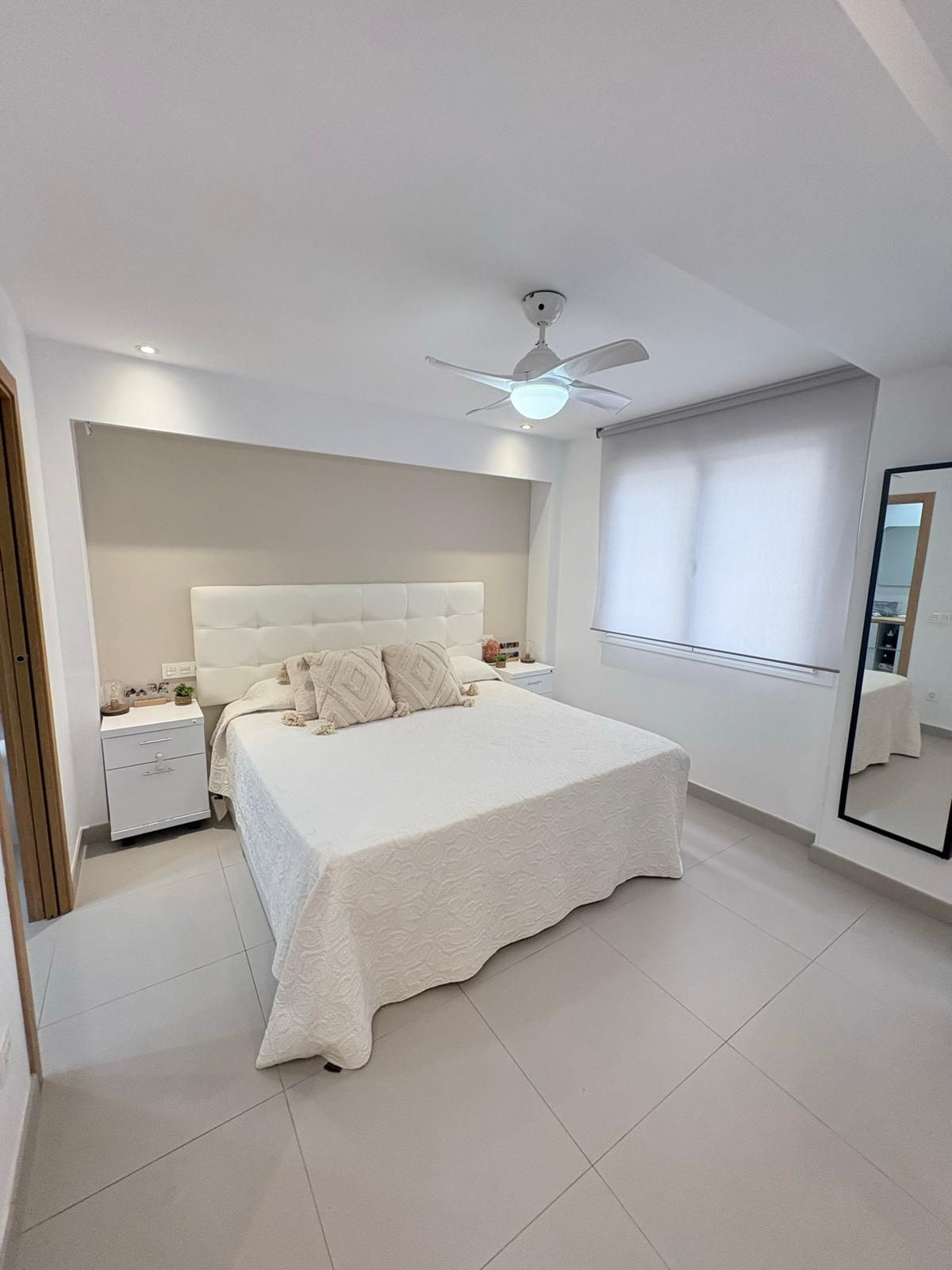 Os presentamos una acogedora vivienda totalmente reformada que ofrece 2 dormitorios con roperos y baños en suite, cocina abierta al salón y terraza cerrada con verjas plegables. La propiedad es muy acogedora, está lista para entrar a vivir y se entrega parcialmente amueblada.