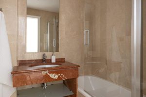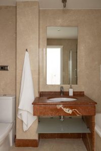 Disfrute de la elegancia de las paredes de mármol travertino en la terraza y de una cocina totalmente equipada con un acogedor rincón de desayuno. La zona de estar y comedor se conecta perfectamente con una terraza cubierta, ideal para entretener a los invitados o relajarse mientras se disfruta de las impresionantes vistas.
