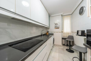 La propiedad, de 79 m², ha sido recientemente reformada y cuenta con carpintería interior y exterior nueva, así como una cocina y baños completamente renovados. Dispone de 2 dormitorios, 2 baños, cocina totalmente equipada, un amplio salón-comedor, una terraza soleada de 5 m² y un trastero. El complejo ofrece, además, jardines comunitarios y piscina y conserje en horario de mañana y tarde.