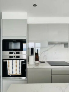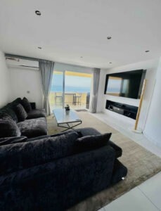 La propiedad ofrece aproximadamente 94 m² construidos, además de una terraza privada de 11 m², y se distribuye en dos dormitorios, dos baños, salón-comedor de concepto abierto y una cocina moderna totalmente equipada. Los amplios ventanales y el acceso directo a la terraza permiten una conexión perfecta entre el interior y el exterior, con el mar como protagonista.