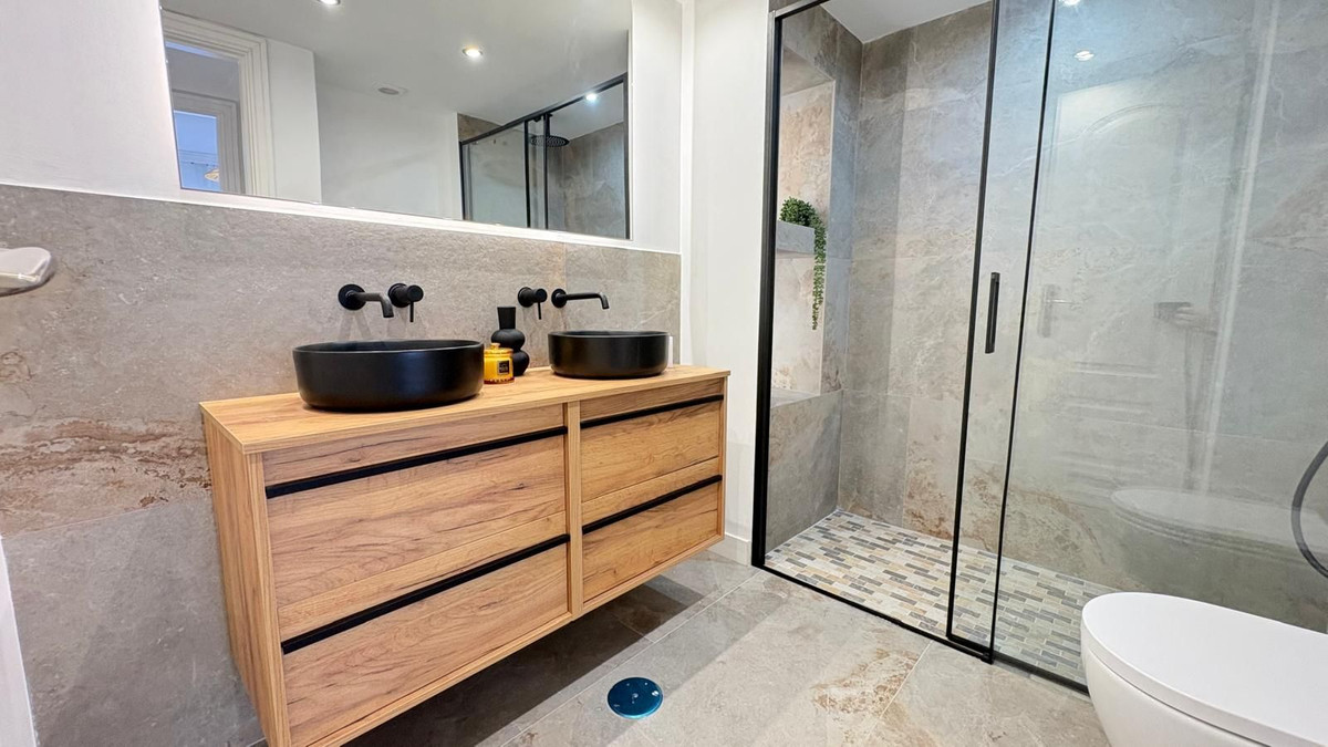La vivienda dispone de dos amplios dormitorios y un baño completo, y ha sido recientemente reformada con materiales de alta calidad. El luminoso salón cuenta con una cocina abierta y zona de comedor, creando un espacio acogedor, funcional y lleno de luz natural.