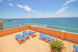 La vivienda dispone de una terraza semicerrada con vistas laterales al mar, un entorno perfecto para relajarse y disfrutar del clima.