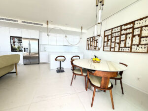 Especificaciones interiores: Cocina de diseño totalmente equipada / Suelo radiante en toda la vivienda, incluidos los baños / Aire acondicionado frío-calor integrado / Suelos de mármol / Sistema de domótica / Doble acristalamiento / Armarios empotrados.