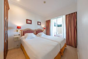 La vivienda, originalmente de tres dormitorios, ha sido redistribuida para ofrecer una mayor amplitud y comodidad en un salón lleno de luz natural. Dos dormitorios con baños en suite ,armarios empotrados, cocina independiente y un tercer baño adicional.