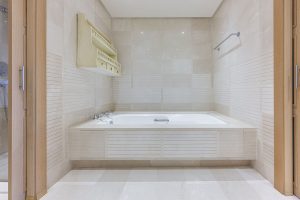 • Dormitorio principal tipo suite con vestidor y baño en mármol (bañera, doble lavabo)