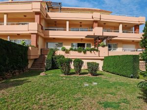 Apartamento Planta Baja en venta en , Mijas Costa con 2 dormitorios, 2 baños y con orientación sur, con piscina comunitaria, garaje privado (1 plazas) y jardín privado. Respecto a las dimensiones, la propiedad presenta 80 m² construidos, 50 m² de parcela y 20 m² de terraza. Tiene las siguientes características servicios cercanos, transporte cercano, aire acondicionado, calefacción central, cocina totalmente equipada, jacuzzi, sala de invitados, entrada de seguridad, barbacoa, servicio de seguridad 24h, aseo para invitados, terraza privada, cocina equipada, salón, internet – wi-fi, terraza cubierta, 24 horas de servicio, comunidad cerrada, ascensor, vistas al jardín, parque infantil cercano, cerca de playa / mar, terraza descubierta, puertas de cristal, muebles opcionales, buen estado, sistema de calefacción de techo, tiendas cerca, cerca de la ciudad, cerca del puerto, colegios cerca y cámaras de vigilancia.