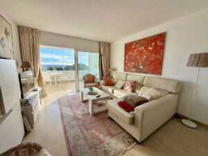 Este apartamento en Miraflores, Mijas Costa, convence por su ubicación privilegiada con magníficas vistas al mar, el paisaje y el jardín y piscina comunitarias bien mantenidos. En 80 m2, el apartamento ofrece dos habitaciones acogedoras, un baño moderno y una zona de estar/comedor de planta abierta, terraza con acristalamiento, que permiten mucha luz del día y vistas al mar. El complejo incluye un hermoso jardín, una amplia zona de piscina y aparcamiento justo enfrente de la entrada.
