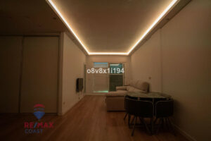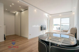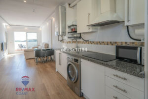 Consta de 2 dormitorios y un baño (antes dos, pero se ha convertido en un gran vestidor que sería fácil volver a convertirlo en baño si lo desea). La cocina está totalmente abierta al salón comedor que accede a la terraza .