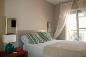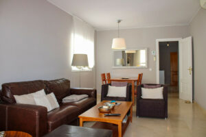 El apartamento se distribuye en dos dormitorios y dos baños completos, cocina totalmente equipada con lavadora, un amplio y luminoso salón-comedor y una gran terraza cubierta con orientación suroeste. Dispone de aire acondicionado en el salón y los dormitorios, y suelos de mármol en toda la vivienda. El apartamento se vende completamente amueblado y se dispone de licencia turística para su alquiler.