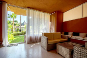 Exclusivo apartamento en planta baja con vistas a los jardines tropicales y a la zona de piscina comunitaria, en un complejo tranquilo y pintoresco en Nueva Andalucía de Marbella. Amplio apartamento con una superficie total de 175m2 e incluye 2 dormitorios, 2 baños, terraza y jardín de 55m2, plazas de aparcamiento subterráneo y un trastero. Han sido diseñados y construidos con materiales de alta calidad.