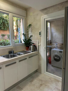 La vivienda se encuentra en la planta baja de un moderno edificio con ascensor. Ofrece una superficie interior de 130 m2 y una terraza de 40 m2, ideal para disfrutar del clima soleado de la Costa del Sol. El apartamento está completamente amueblado, con un diseño contemporáneo y acabados de alta calidad.