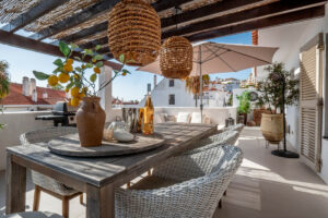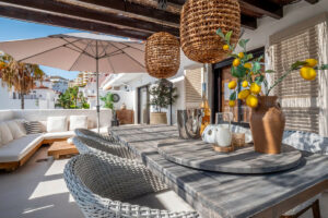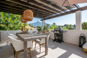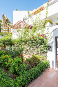 Hermoso apartamento de 2 dormitorios elegantemente renovado en la acogedora, popular y típica urbanización española La Maestranza en el corazón de Nueva Andalucía.