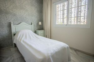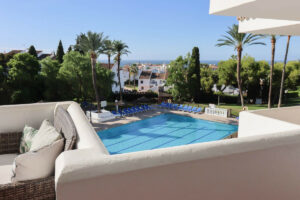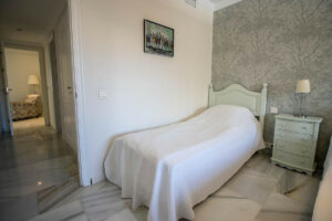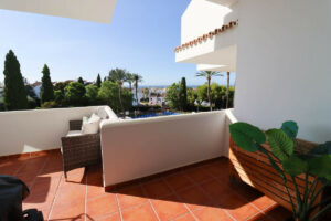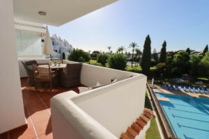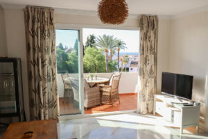 Bienvenido a este espacioso apartamento de 2 dormitorios y 2 baños en la cuidada y perfecta urbanización de Royal Gardens. El apartamento cuenta con una cocina abierta que se integra armoniosamente con el salón. La terraza cuenta con un comedor con preciosas vistas al jardín y al mar Mediterráneo. La terraza también cuenta con una pequeña zona para hacer barbacoas o relajarse al aire libre en el dormitorio principal. Es el lugar perfecto si prefiere dejar el coche en el garaje mientras camina a la playa, tiendas o restaurantes. En los alrededores encontrará algunos de los mejores campos de golf de la zona. El apartamento incluye garaje y trastero, a los que se puede acceder fácilmente con el ascensor. La urbanización es una comunidad segura y cerrada con cámaras de vigilancia 24 horas.
