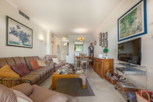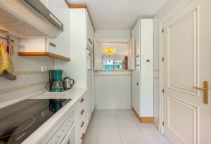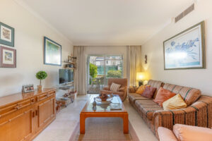 Apartamento en planta baja situado muy cerca del club de golf de Aloha y a tan solo un paseo en buggy de Las Brisas golf. Consta de dos dormitorios, dos baños, salón-comedor con porche cubierto y jardín privado. Garaje cubierto. Complejo muy privado.