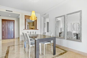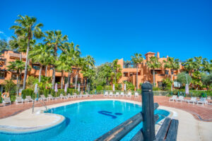 Elegante apartamento en planta baja situado en una de las urbanizaciones más exclusivas y pacíficas de Nueva Andalucía. Esta propiedad cuidadosamente mantenida ofrece la mezcla perfecta de comodidad, privacidad y encanto mediterráneo. Cuenta con dos amplios dormitorios y dos baños, incluyendo un dormitorio principal con baño en suite. Ambos dormitorios gozan de acceso a sus propias terrazas privadas, proporcionando mucha luz natural y privacidad agregada. La cocina independiente está totalmente equipada e incluye una cómoda zona de lavandería. El luminoso salón-comedor se abre a una gran terraza privada con acceso directo a la piscina comunitaria, ideal para disfrutar de la vida al aire libre todo el año. Otras características incluyen un aparcamiento subterráneo privado y un trastero. Situado en una comunidad cerrada con seguridad las 24 horas, el complejo está rodeado de exuberantes jardines tropicales, un lago y una gran piscina, que ofrece un ambiente seguro y tranquilo. Idealmente situado a pocos minutos de Puerto Banús, mejores campos de golf y todas las comodidades esenciales, esta propiedad es una excelente opción como residencia permanente, casa de vacaciones o oportunidad de inversión.