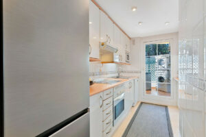 Este apartamento se encuentra en Señorio de Aloha, Nueva Andalucía, Marbella, Málaga. Ofrece dos dormitorios y dos baños, uno de ellos en suite. La propiedad cuenta con una superficie construida de 99 m² y una terraza privada de 20 m². Está ubicada dentro de una comunidad cerrada, lo que proporciona seguridad y tranquilidad.